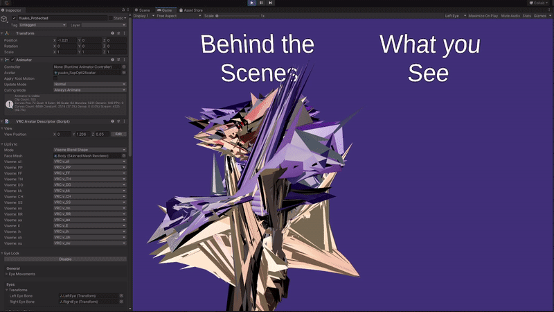 - Scrambles your avatar's meshes with your key using multiple methods, and locks/obfuscates the Animator